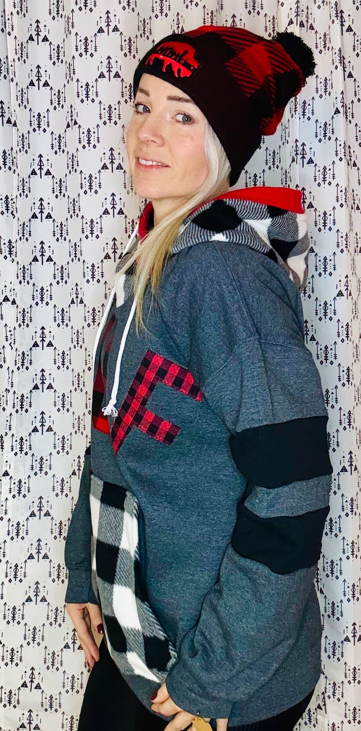 Charcoal Grey & Plaid BUF Hoodie Size- Unisex L/XL