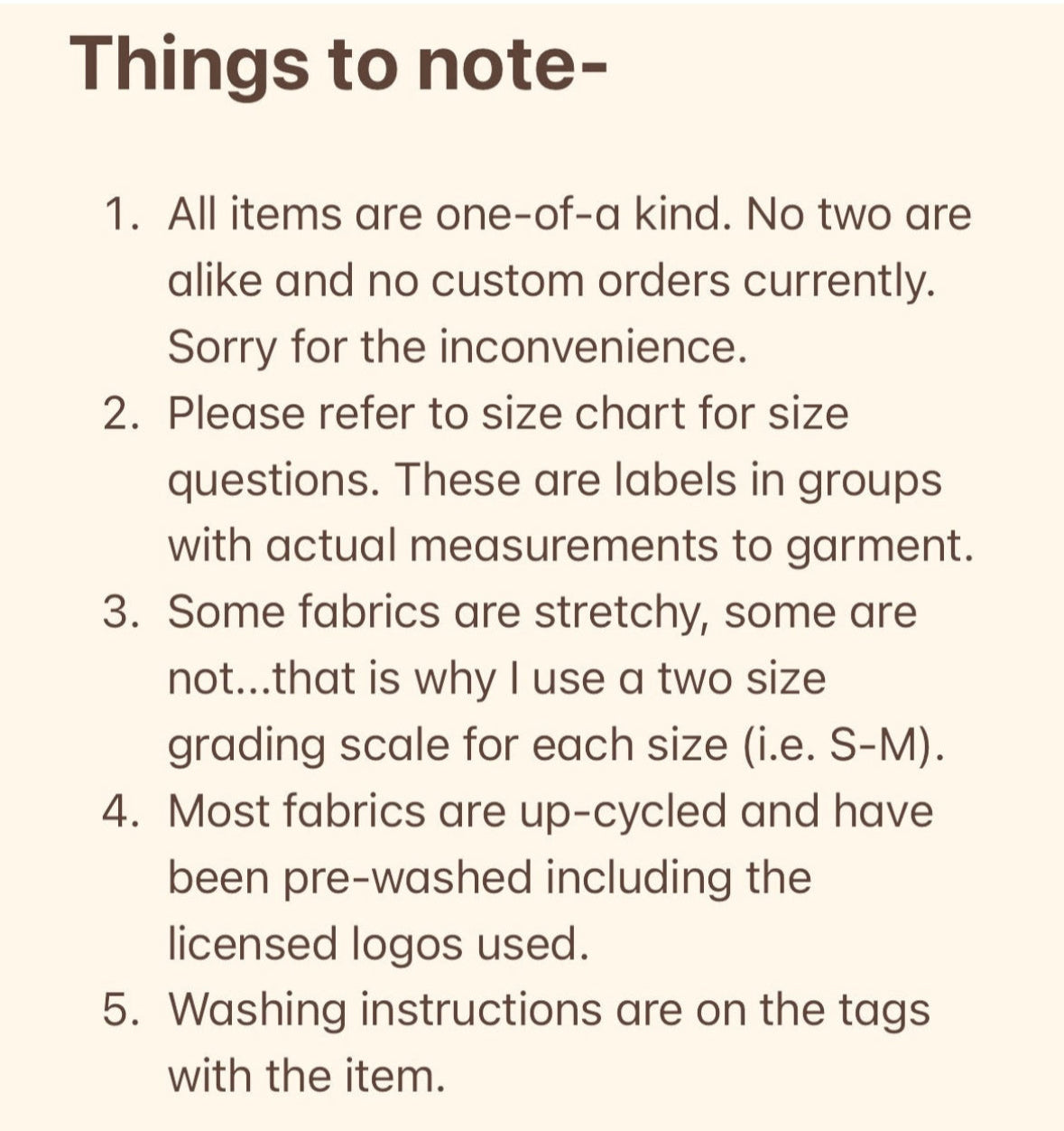 All garments have various fabrics and materials. To ensure the longevity of the garment. Wash with cold water and tumble dry low or lay flat to dry.