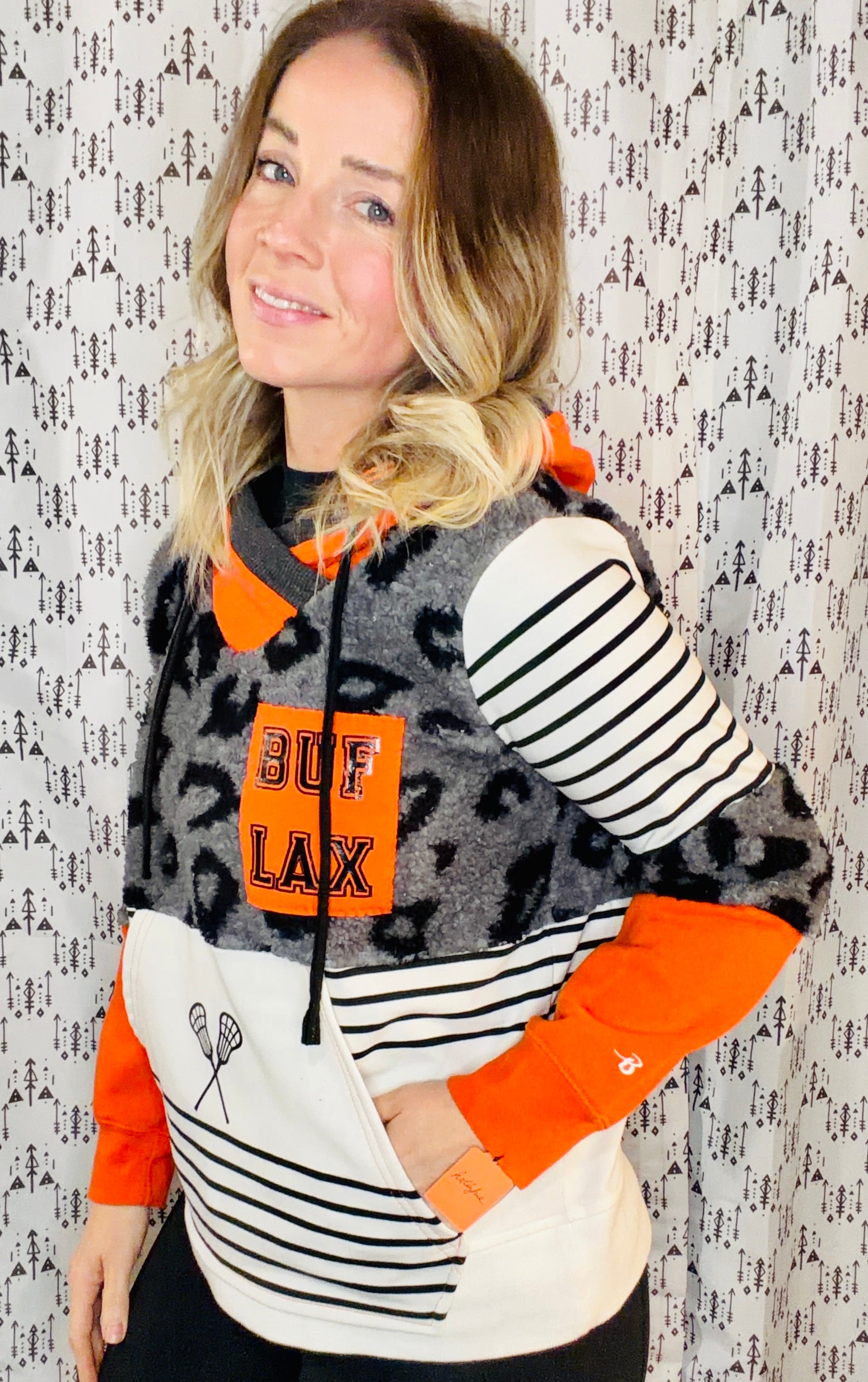 Leopard & Stripe Buffalo Lacrosse Hoodie Size- Women's M/L